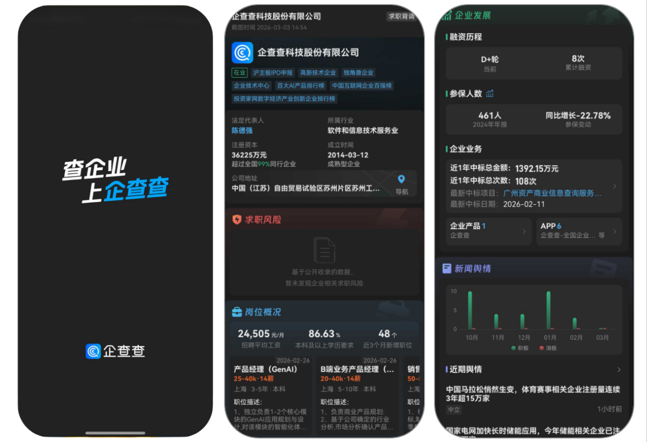 “毕竟网评有主观色彩,甚至存在恶意差评,数据才更有说服力。”金融行业求职者钱雯雯是企查查等工具的深度用户。在她眼中,这些平台就是透视企业的“显微镜”。