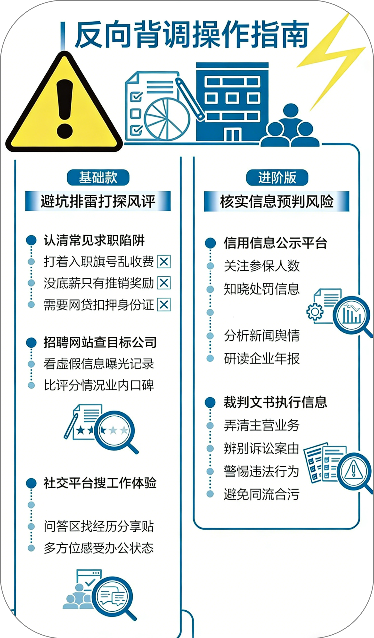 甘林欣提醒,如今注册公司门槛降低,注册资本实行认缴制,求职者切莫被唬人的数字蒙蔽,更不要轻信“画大饼”。特别是对于高风险行业,要多方求证,审慎决策。“一些企业游走在法律边缘,以高薪为诱饵招人做违规业务,求职者一旦被洗脑,可能稀里糊涂卷入诈骗、非法集资等违法行为,最终不仅工资打水漂,还可能惹上刑事麻烦。”